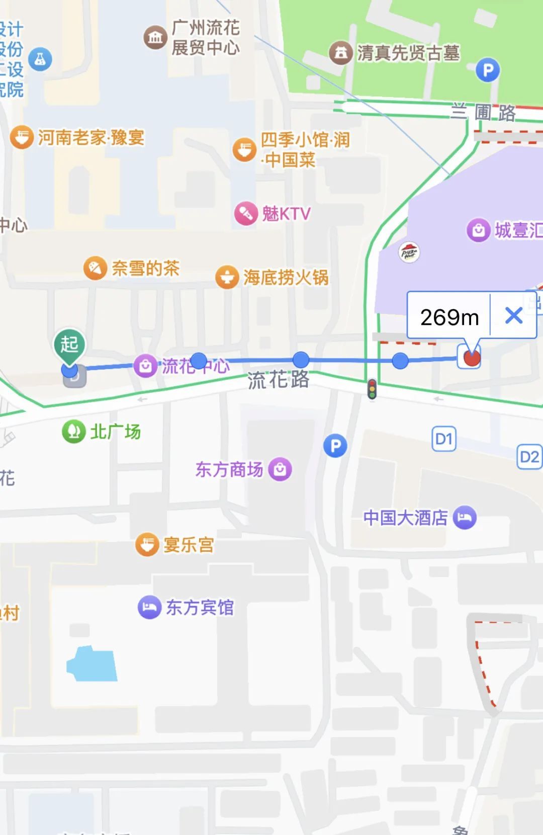 对此,有网友提出,在广州火车站以南,11号线流花站与2号线越秀公园站距离相近,具备实施“虚拟换乘”的可行性。据测算,两站最近的出入口相距约270米,地面步行时间约3分半钟,换乘总用时预计约10分钟。进一步考察换乘体验,沿路大部分有树荫遮盖,人行道较为宽阔,两个出入口均设有扶梯。