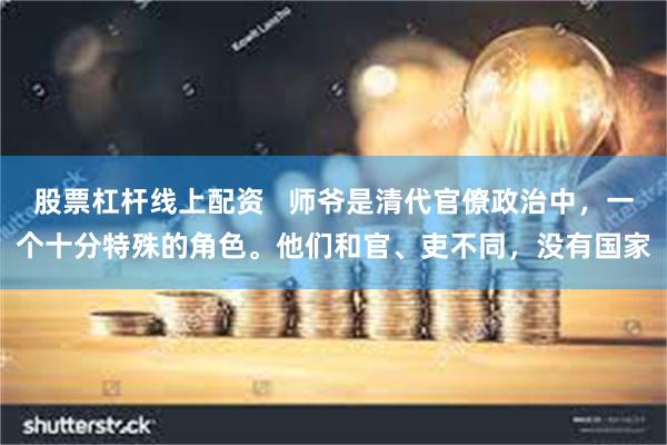 师爷是清代官僚政治中股票杠杆线上配资 ,一个十分特殊的角色。他们和官、吏不同,没有国家的正式编制,属于自由职业者,“合者留,不合则去”,完全不受约束。